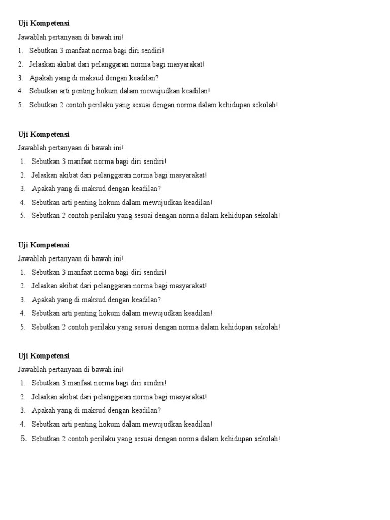 Sanksi terhadap pelanggaran kebiasaan tidak sekuat sanksi pelanggaran pada hukum adat. Apa persamaan rumusan dasar negara yang diusulkan oleh para pendiri negara ? Mangihin.com norma adalah sebuah ketentuan yang dimana ketentuan tersebut akan mengatur tingkah laku dari seorang manusia untuk melakukan . Keberhasilan penerapan media katkan keaktifakartu permainan untuk. Kunci jawaban tugas uji kompetensi 2.2 dalam buku pendidikan pancasila dan.